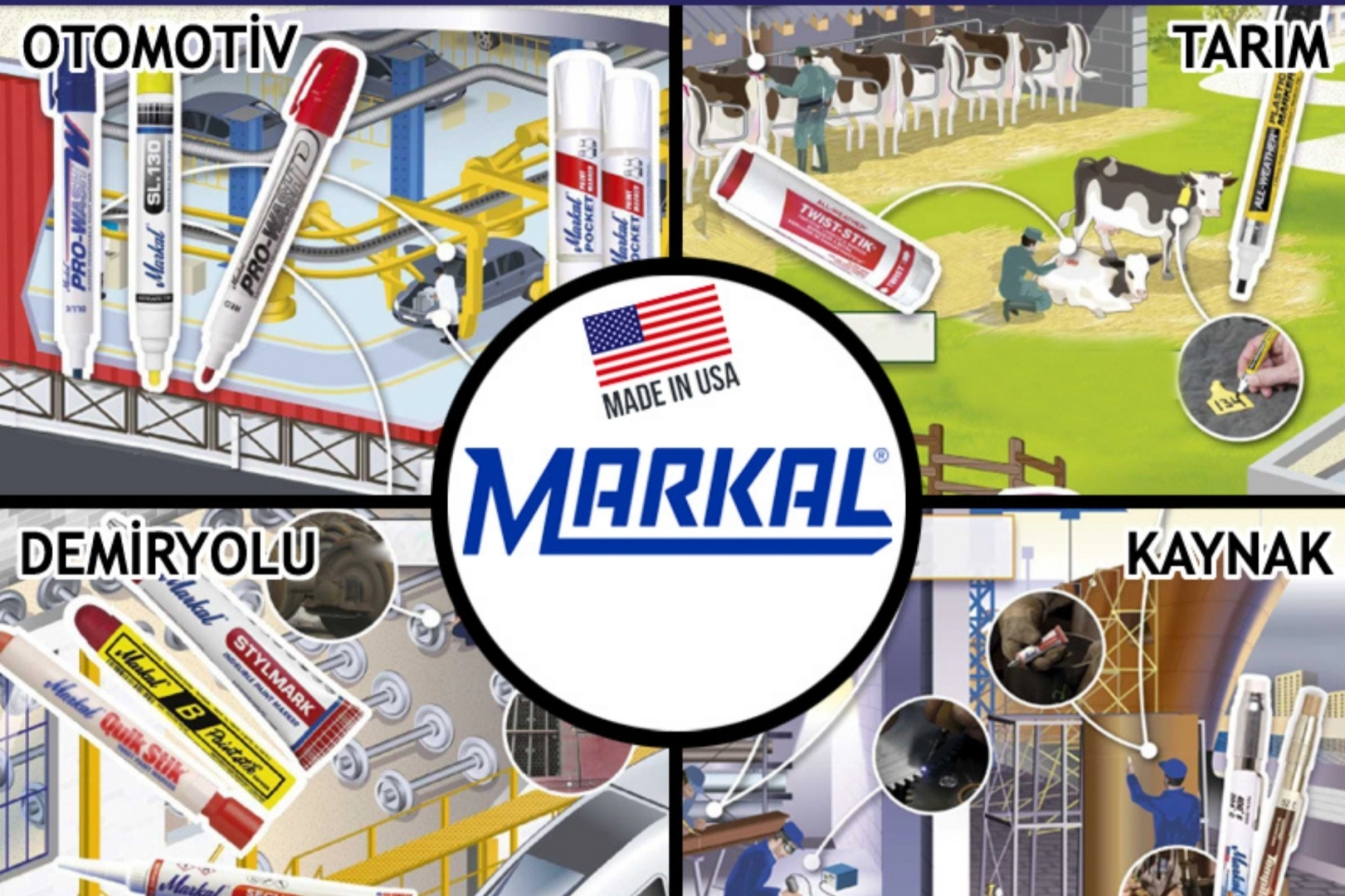 Yağlı, paslı, ıslak, kızgın veya pürüzlü yüzeylerde bile %100 kalıcı işaretleme sağlayan Amerikan MARKAL endüstri yel markörleri, 2005'ten bu yana Türkiye'de Habib Makina güvencesiyle ağır sanayinin çözüm ortağı olmaya devam ediyor. MARKAL; çelik, gemi inşaatı, enerji, petrol/doğalgaz ve nükleer sektörlerinin kritik ihtiyaçlarına yönelik geniş ürün gamı ve yüksek performansa sahip sertifikalı çözümleri ile dikkat çekiyor.