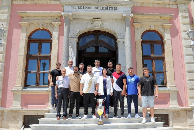Edirne Belediye Başkanı Av. Filiz Gencan Akın, final müsabakasında rakibi Mustafa Taş’ı yenerek Başpehlivan olan Yusuf Can Zeybek’i makamında kabul etti.